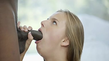 Sexy blonde shaved pussy slut loves a cock in her mouth while getting anal fuck